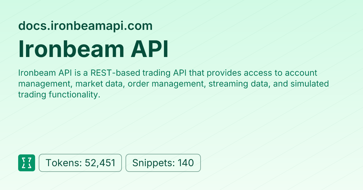 Ironbeam’s API is now available on Context7’s MCP server for those who work with AI to write code to connect to the API.