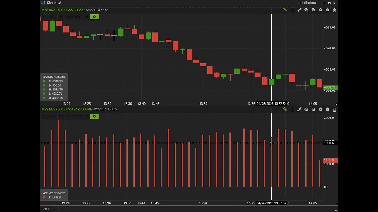 More specifically, it looks like the cursor line does not line up. The actual volume bars MAY correlate to the candle but I can’t tell bc the cursor vertical line doesn’t seem to align with both candle and volume bar all the time when using tick charts as shown in the pic. Note that the volume chart setting matches 500 ticks which displays in the image I posted. I also sent you a separate snip of the image.